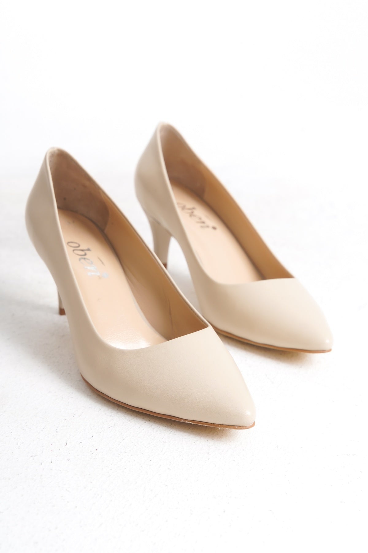 Hakiki Deri Bej Kadın Stiletto | OBEN AYAKKABI