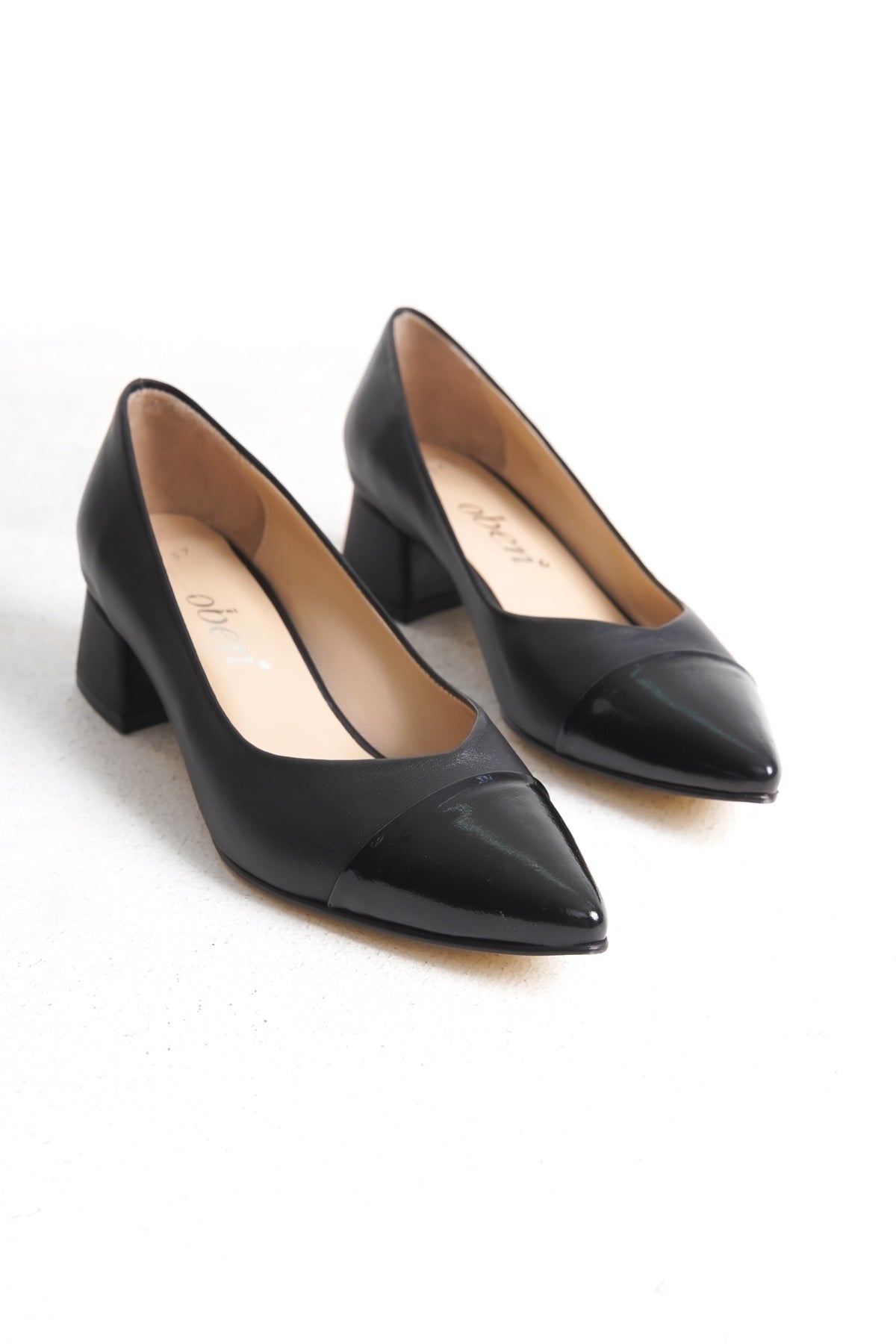 Hakiki Deri Siyah Kalın Topuklu Kadın Ayakkabı | OBEN AYAKKABI