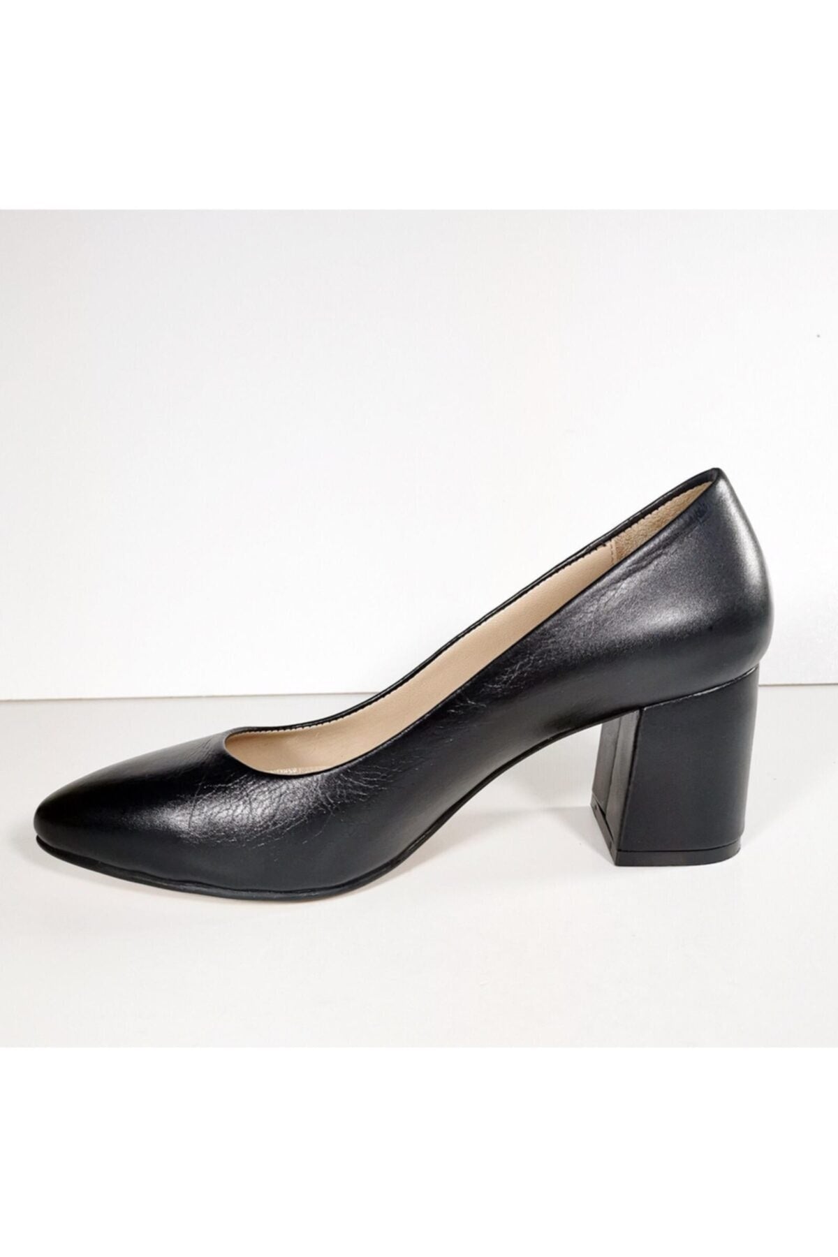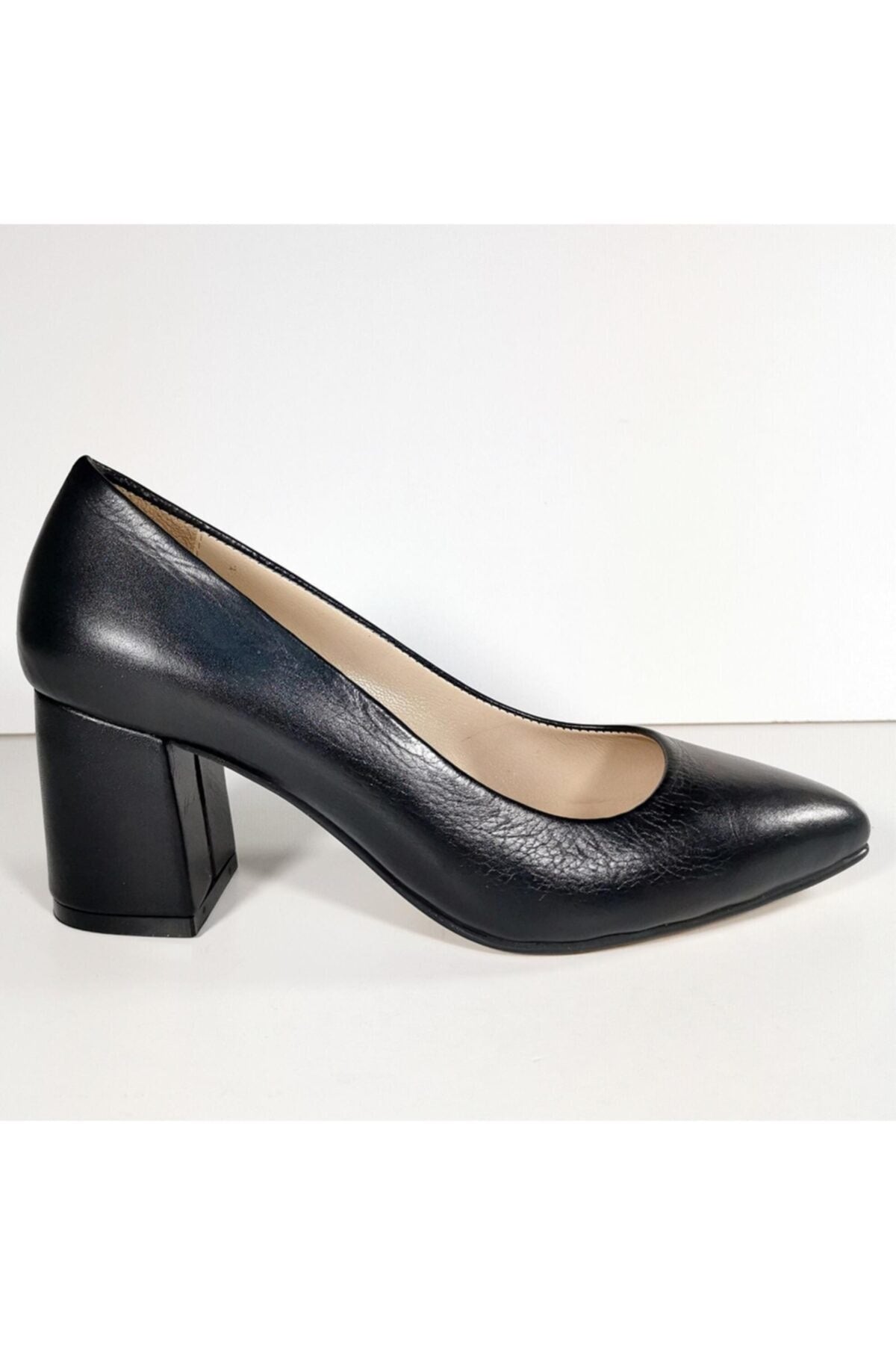Hakiki Deri Siyah Kalın Topuklu Ayakkabı | OBEN AYAKKABI