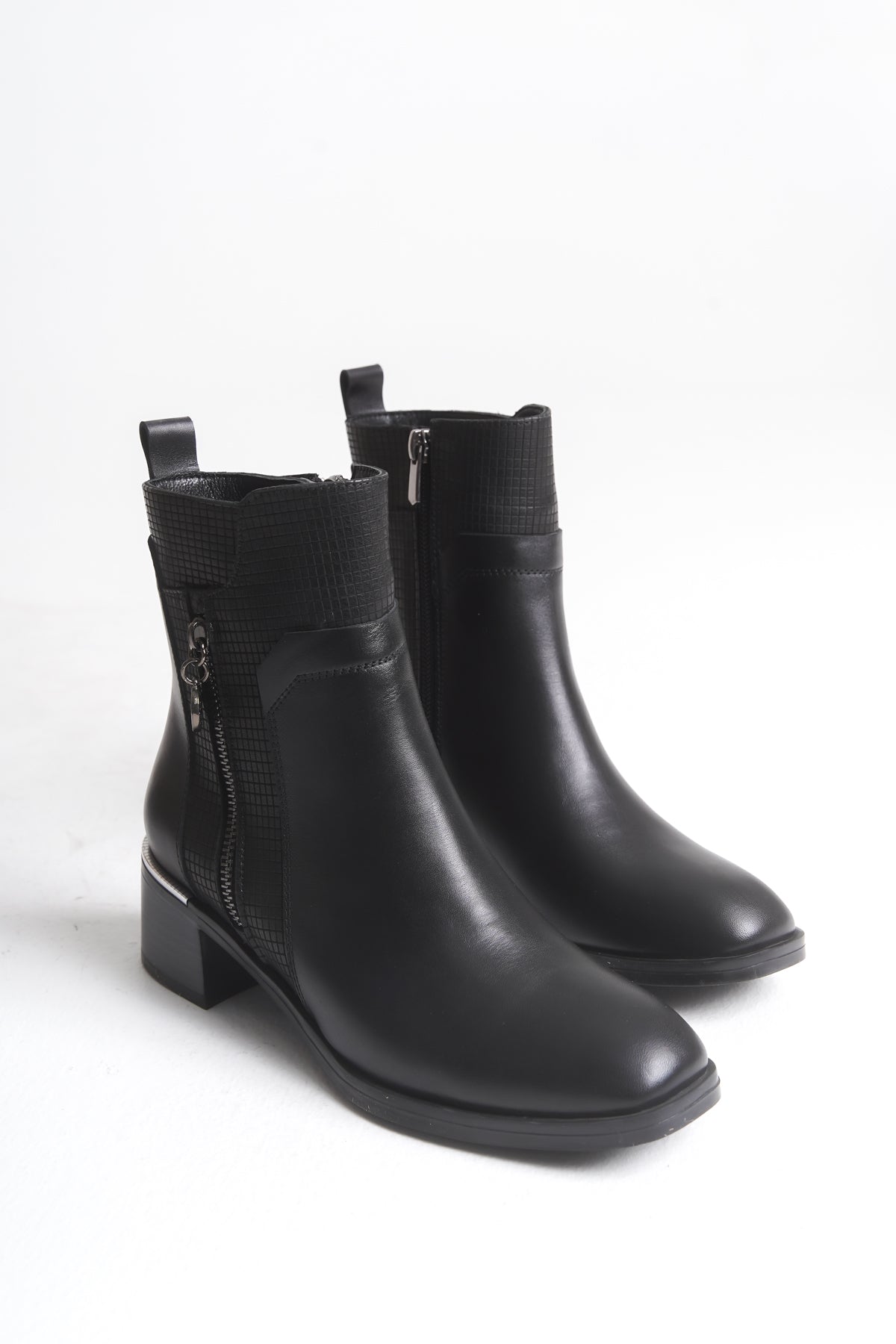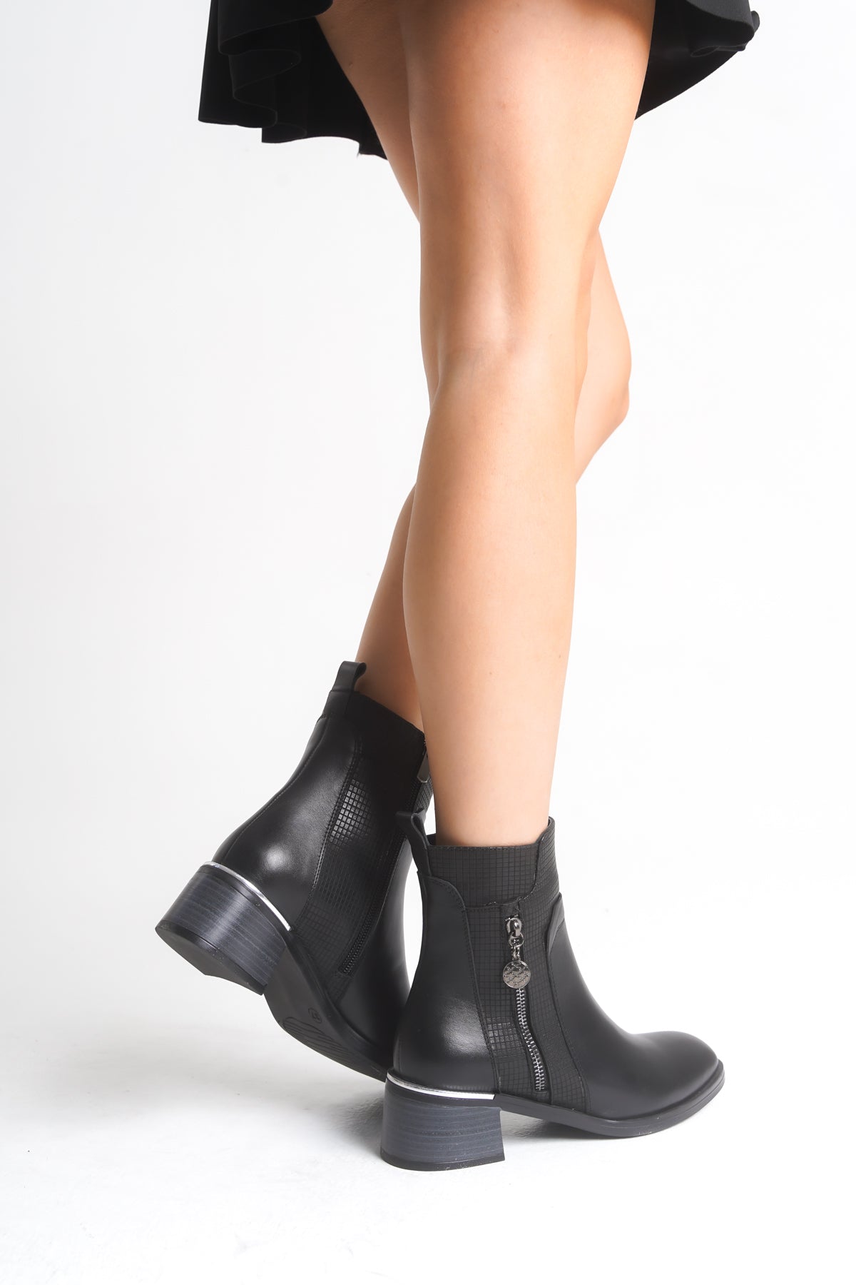 Kadın Hakiki Deri Topuklu Bot – El Yapımı, Fermuarlı, Şık Tasarım Siyah Bot | OBEN AYAKKABI