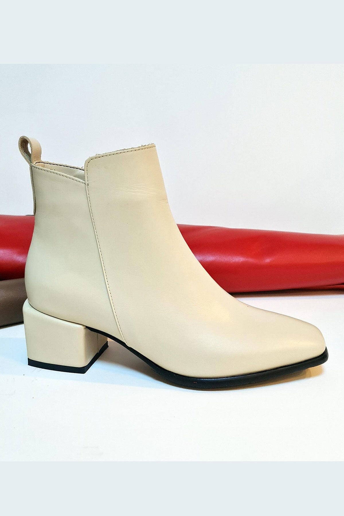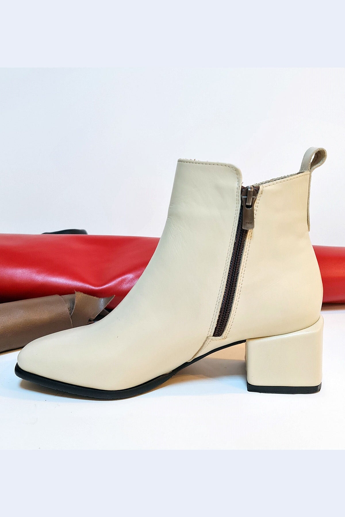 Kadın Hakiki Deri Topuklu Bot – El Yapımı, Şık Tasarım Bej Bot | OBEN AYAKKABI
