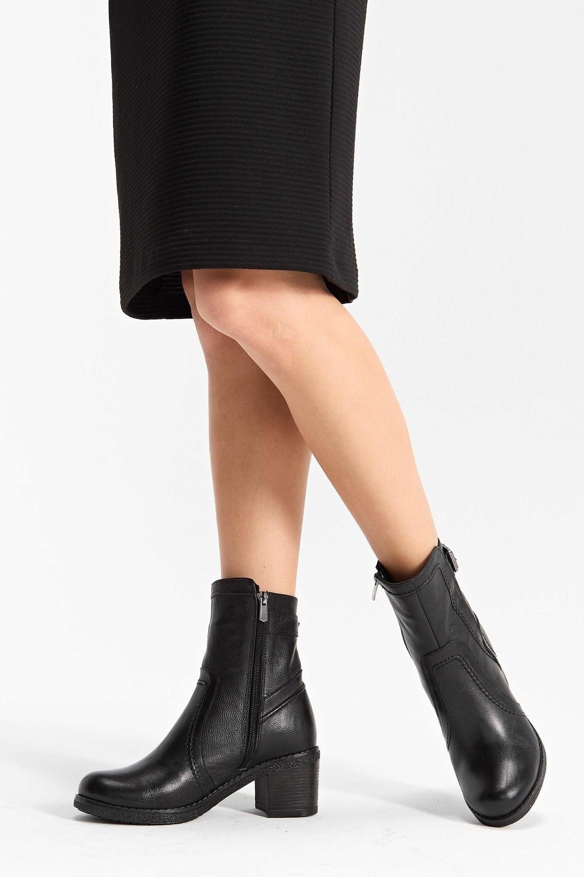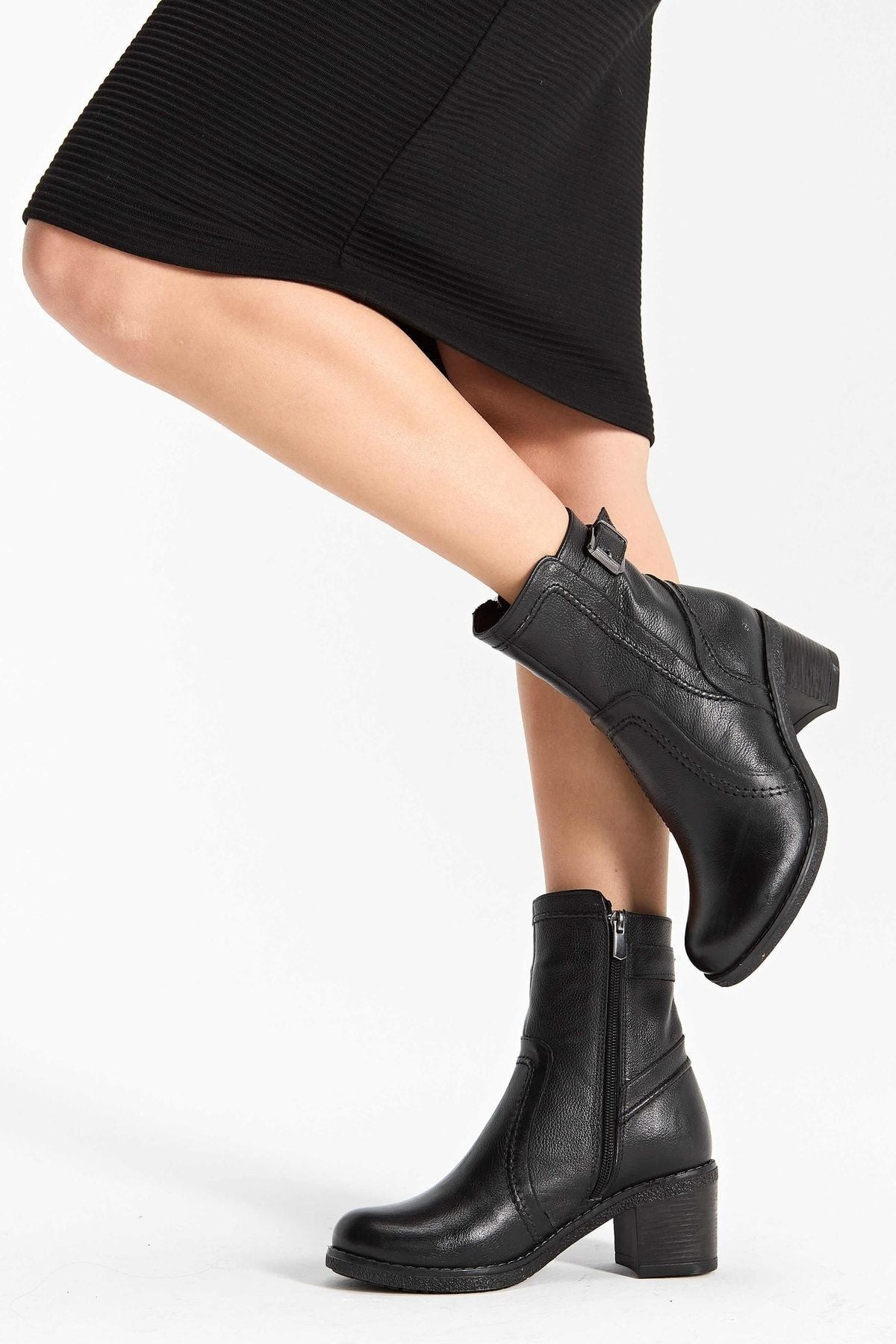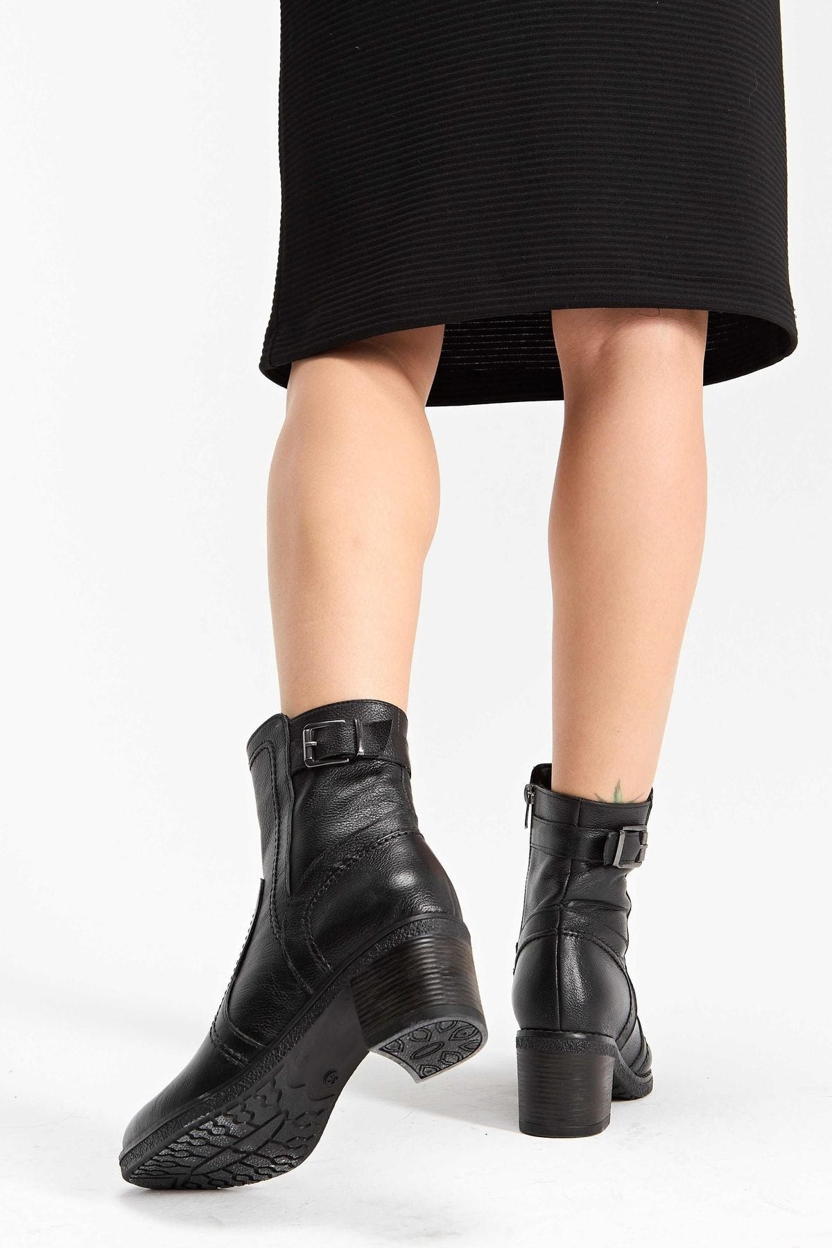 Kadın Hakiki Deri Topuklu Bot – El Yapımı, Şık Tasarım Siyah Bot | OBEN AYAKKABI