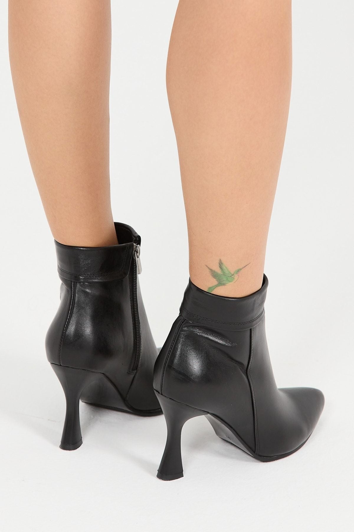 Kadın Hakiki Deri Topuklu Bot – El Yapımı, Şık Tasarım Siyah Bot | OBEN AYAKKABI